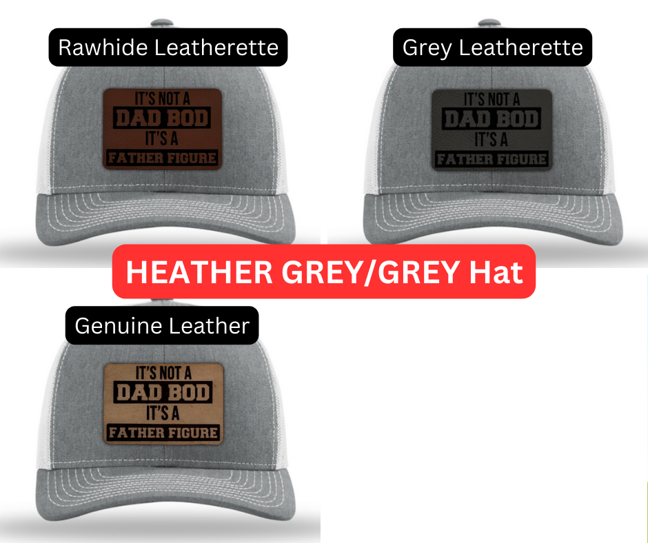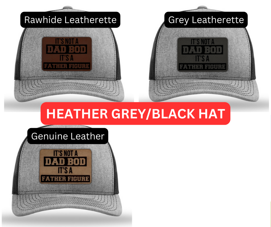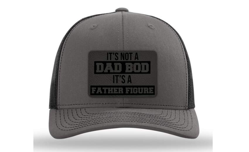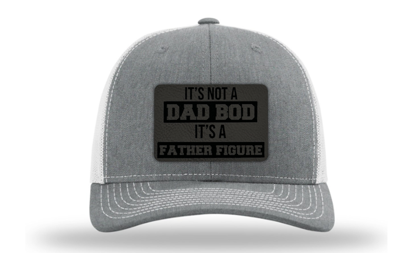 Crafted with premium materials, this hat is not just a fashion statement but a lighthearted tribute to the dads who rock their dad bods with confidence. The laser engraved and cut patch, available in Genuine Leather, Rawhide Leatherette, and Grey Leatherette, features the witty phrase "It's Not a Dad Bod, It's a Father Figure," celebrating the unique physique and enduring love of fathers everywhere.
