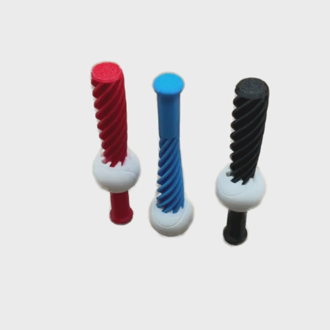 Our Baseball & Bat Pass Through Fidget is a satisfying toy designed for busy hands. The baseball smoothly slides along the bat, creating a calming, repetitive motion that's perfect for focus, stress relief, or just plan fun.