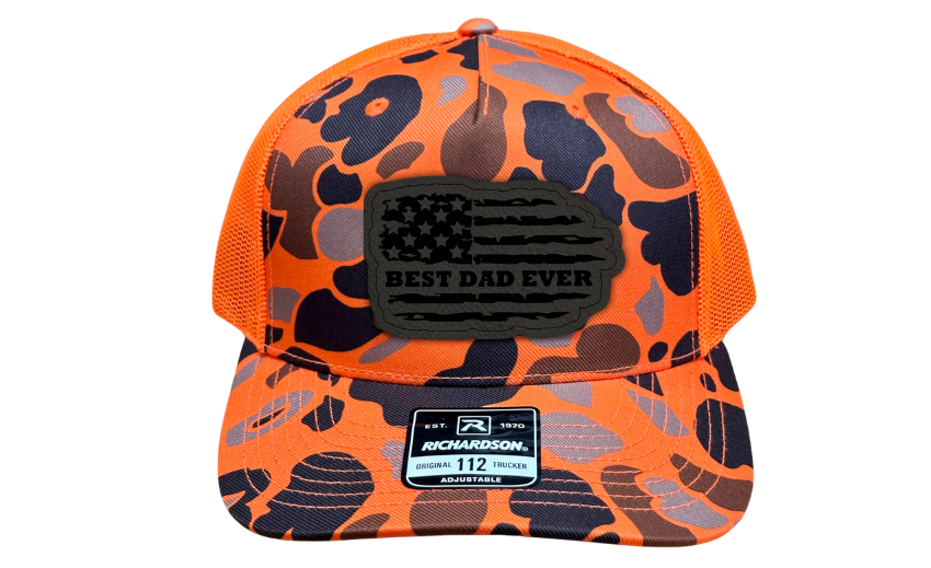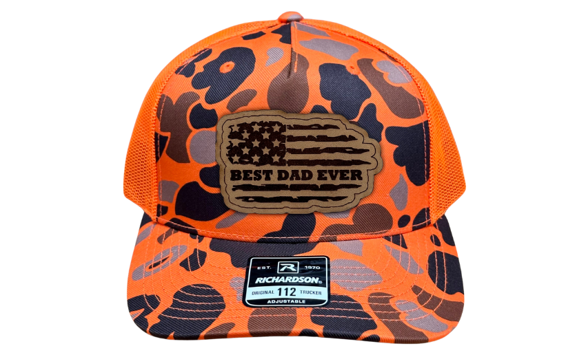 Introducing our Richardson 112 Snapback or FlexFit L/XL adorned with the "Best Dad Ever" Patch, featuring a tattered American flag design – the perfect way to honor the unparalleled greatness of dads everywhere. Available in a variety of stylish color combinations including Charcoal/Black, Heather Grey/Black, Khaki/White, Heather Grey/Grey, Green Camo, and Orange Camo, there's a hat to match every dad's individual style.