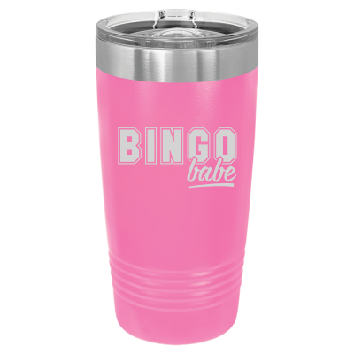 Get ready to daub in style with the Bingo Babe 20 oz Polar Camel Insulated Tumbler! Perfect for every bingo enthusiast, this tumbler keeps your favorite drink at the perfect temperature, whether you're at the bingo hall or relaxing at home. The laser-engraved "Bingo Babe" design adds a touch of personality, making this tumbler a must-have for any bingo lover.