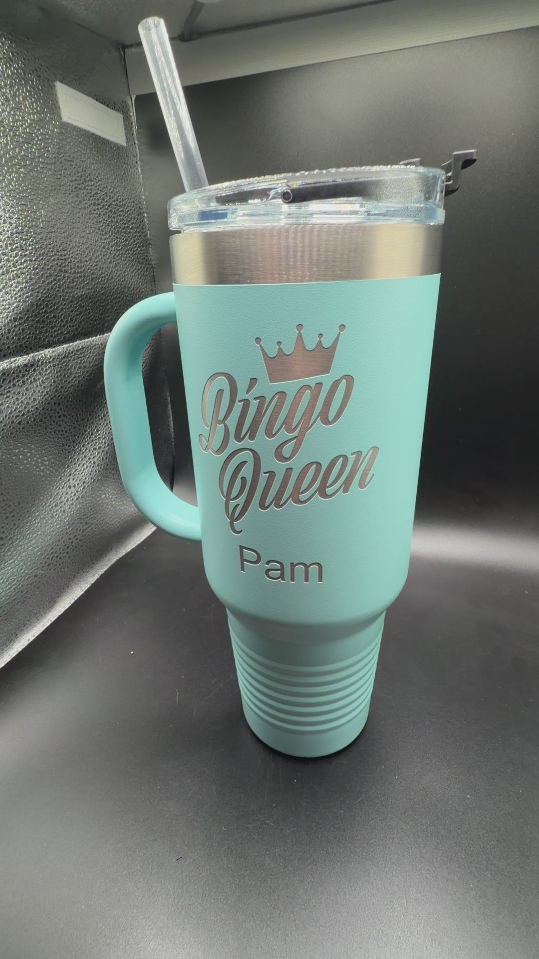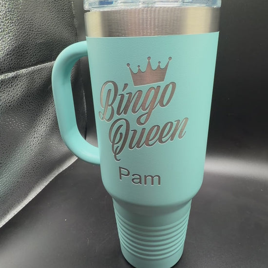 eign supreme at every bingo game with our 40 oz Polar Camel Insulated Tumbler, elegantly laser engraved with "Bingo Queen." This tumbler is designed for those who take their bingo seriously, offering a generous 40 oz capacity to keep you hydrated and in control from the first number called to the final "Bingo!"