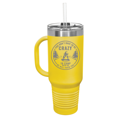 Get ready for campfire laughs and wilderness adventures with this 40oz Polar Camel Tumbler, perfect for all your camping trips! Laser-engraved with the cheeky phrase, "You Don't Have to Be Crazy to Camp with Us, We Will Train You," this tumbler brings a fun, light-hearted vibe to any outdoor setting.