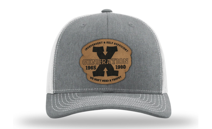 Introducing our Generation X - Independent and Self-Sufficient laser engraved and cut patch, now available on the iconic Richardson 112 snapback or FlexFit L/XL. Celebrate the resilient spirit of Generation X with a statement piece that speaks to your self-reliance and independence.