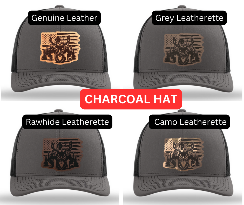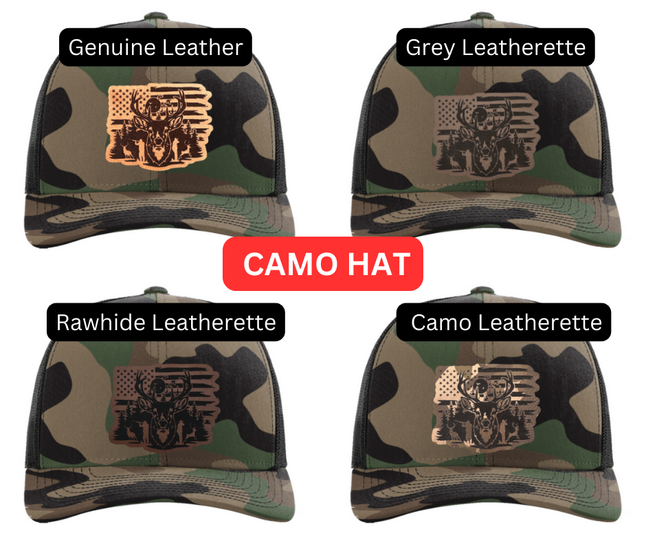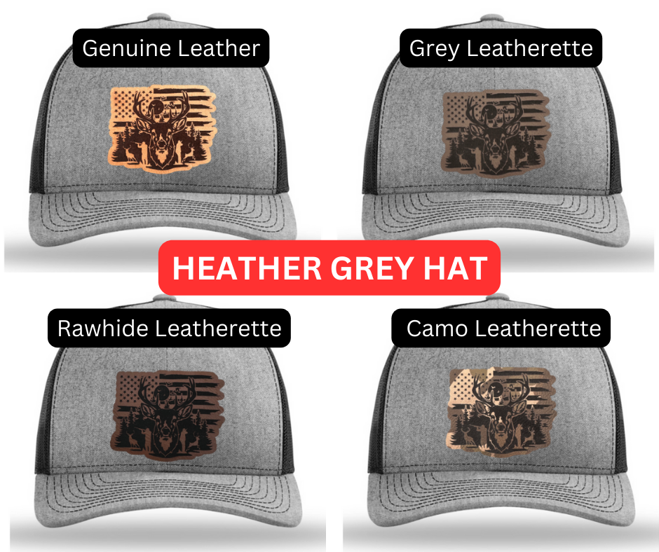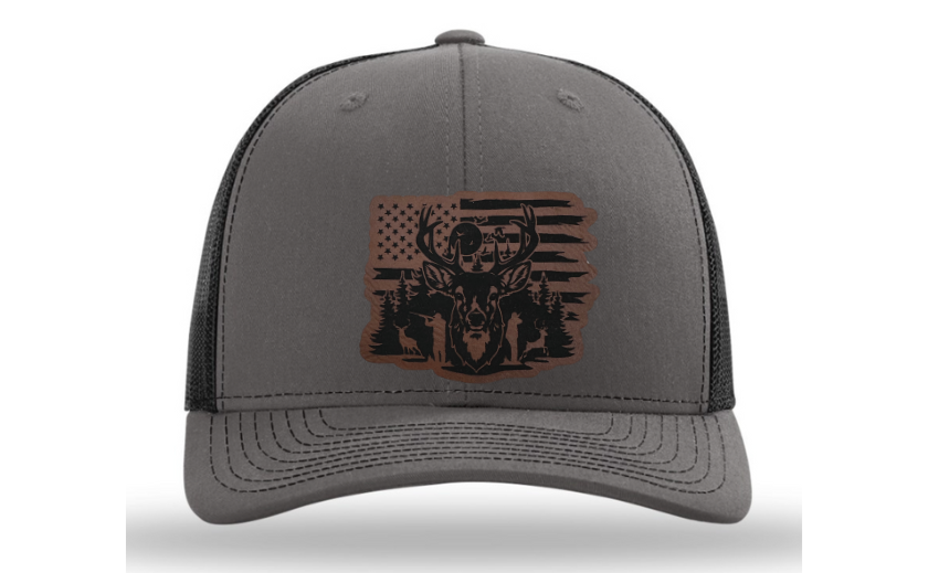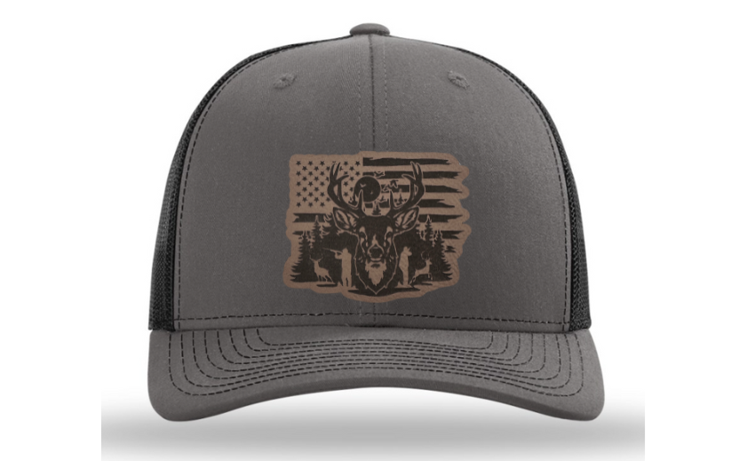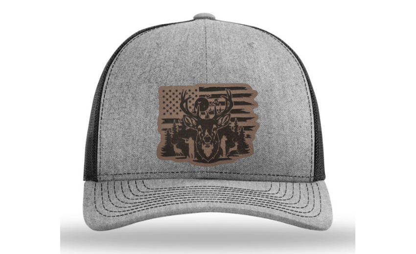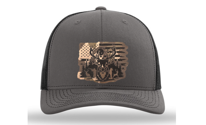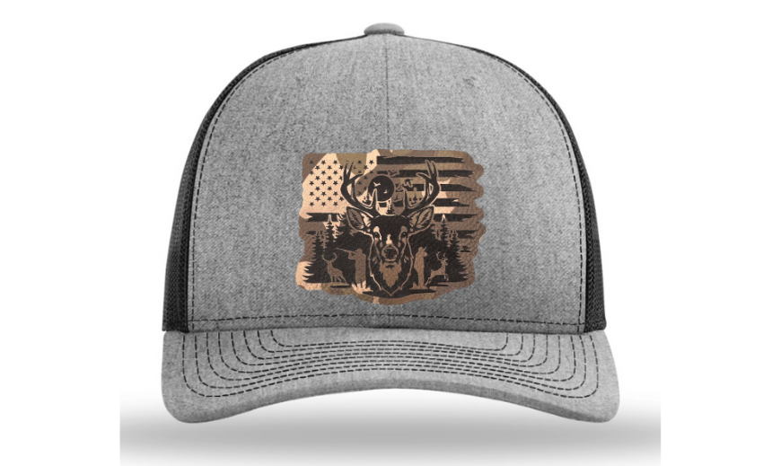 Crafted with precision and comfort in mind, the Richardson 112 Snapback offers an adjustable fit, while the FlexFit L/XL provides a snug and flexible feel. The defining feature of this hat is its meticulously crafted patch, available in Genuine Leather, Rawhide Leatherette, Grey Leatherette, and Camo Leatherette. The patch is a visual celebration of the American spirit, the thrill of the hunt, and the serene beauty of nature.