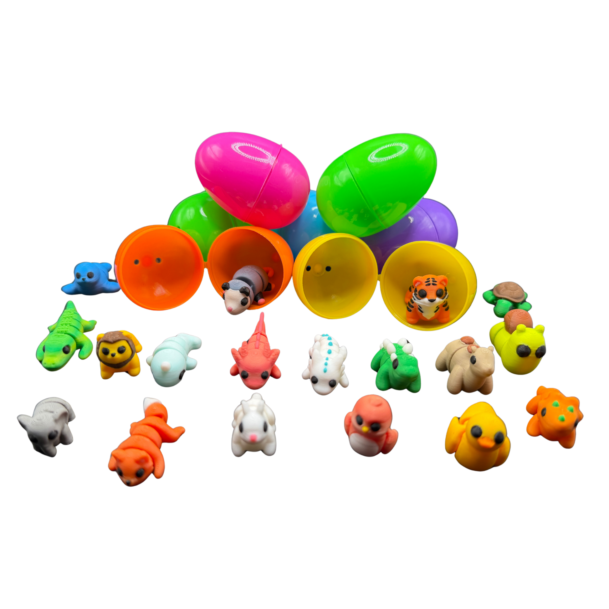 Choose to receive just the animals or animals tucked inside bright plastic Easter eggs for easy gifting and hiding.