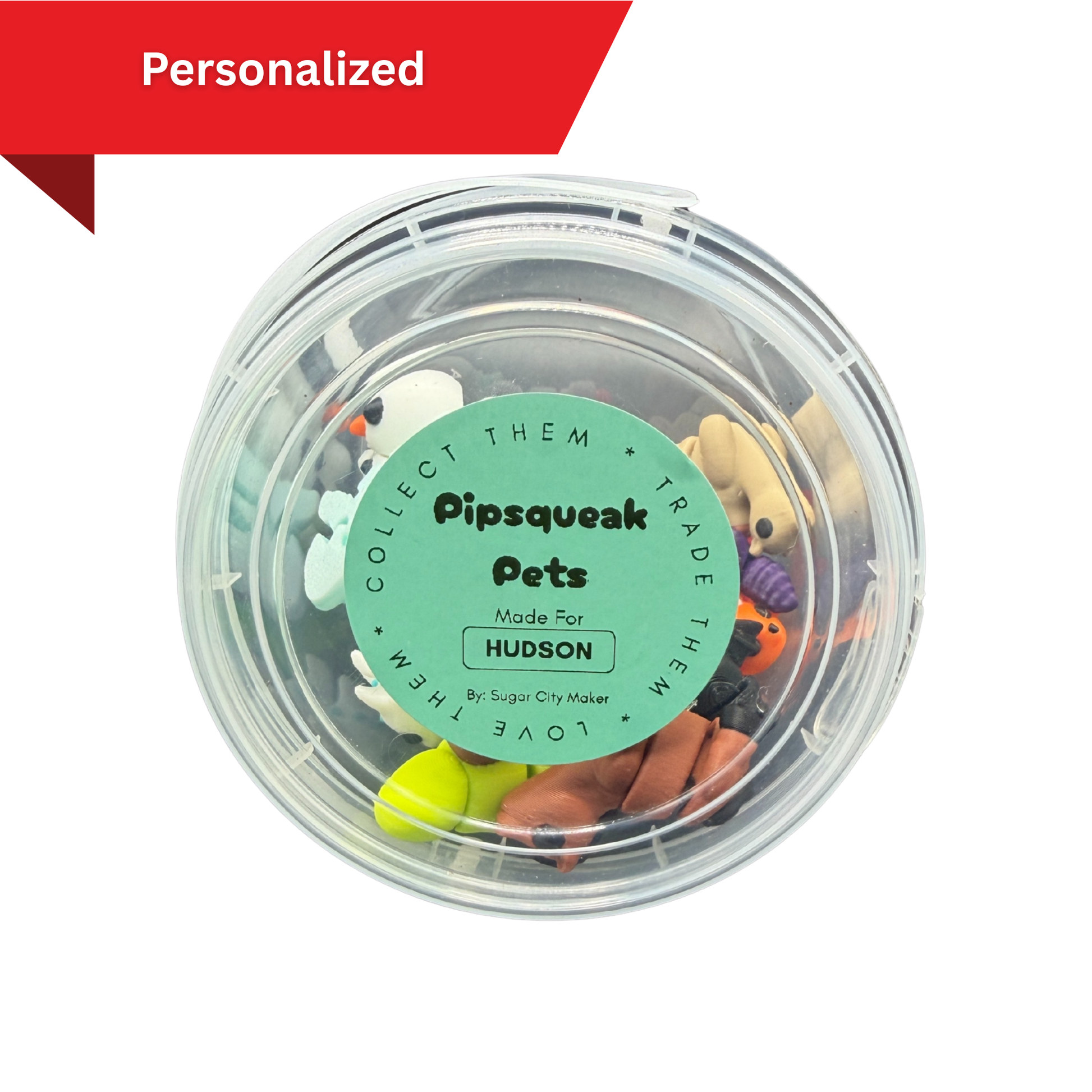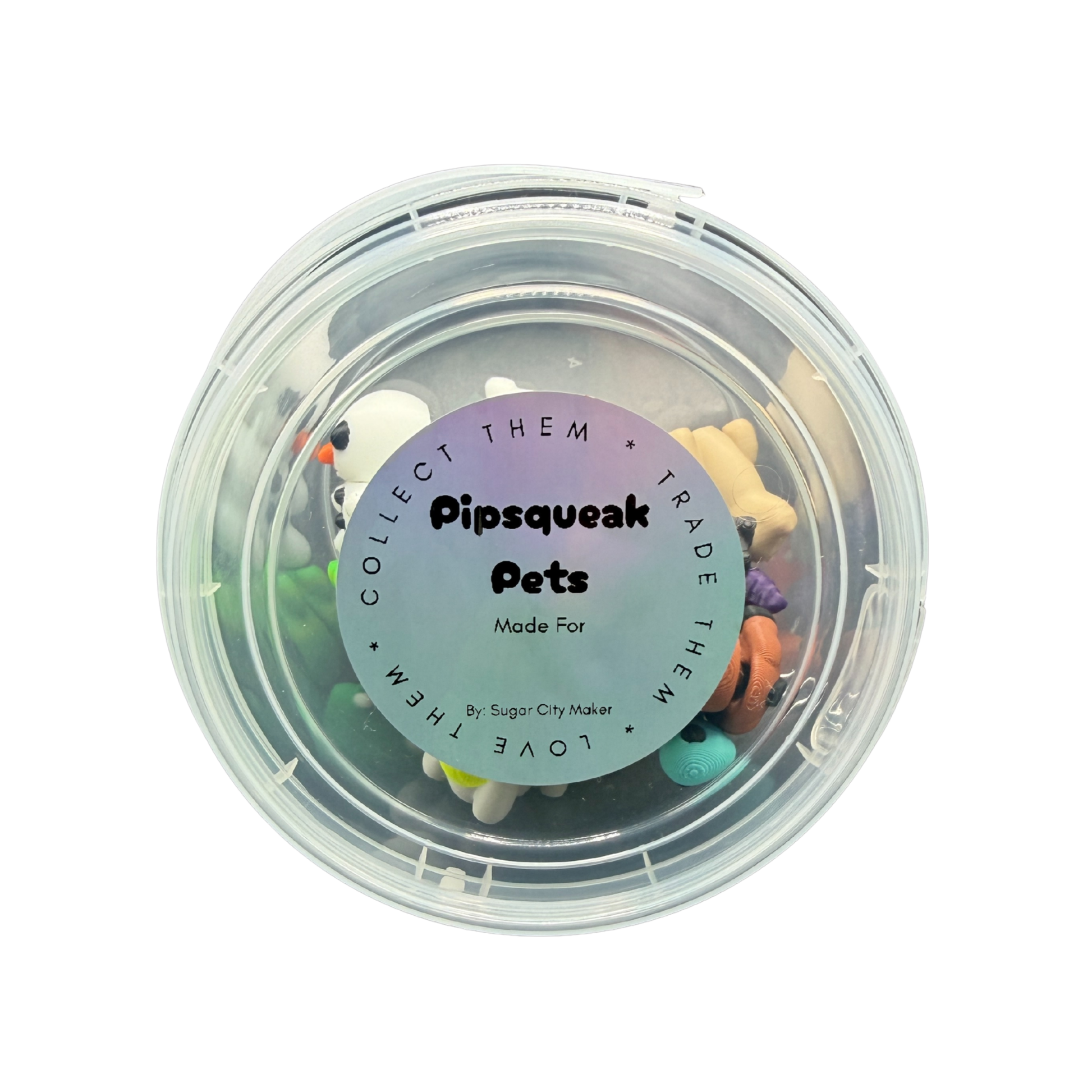Our Pipsqueak Pets 10oz Bucket is filled with adorable 3D printed articulated mini animals that wiggle, bend, and are perfect for collecting, trading, and imaginative play. Each clear bucket comes packed with your chosen quantity of Pipsqueak Pets, making it a fun surprise gift or collectible set.