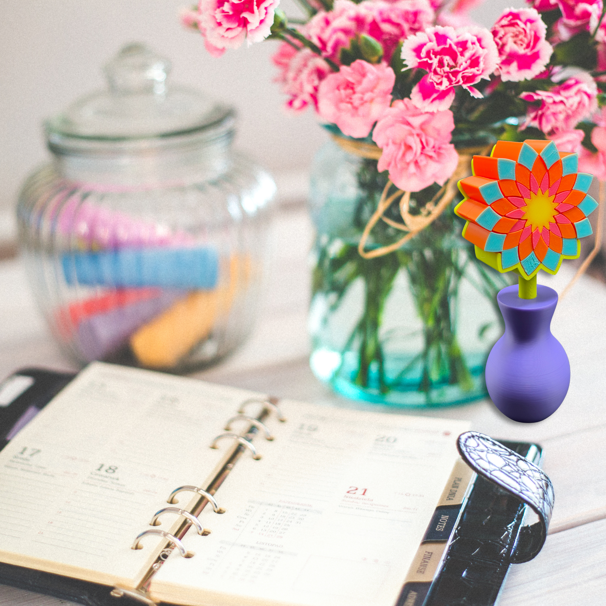 Bring a pop of color and calm to your desk with this Large Pixel Flower Fidget, a playful blend of modern pixel art design and satisfying sensory motion. At first glance it looks like cheerful desk decor, but pick it up and you'll discover the flower head detaches from the stem and becomes a smooth, tactile fidget.
