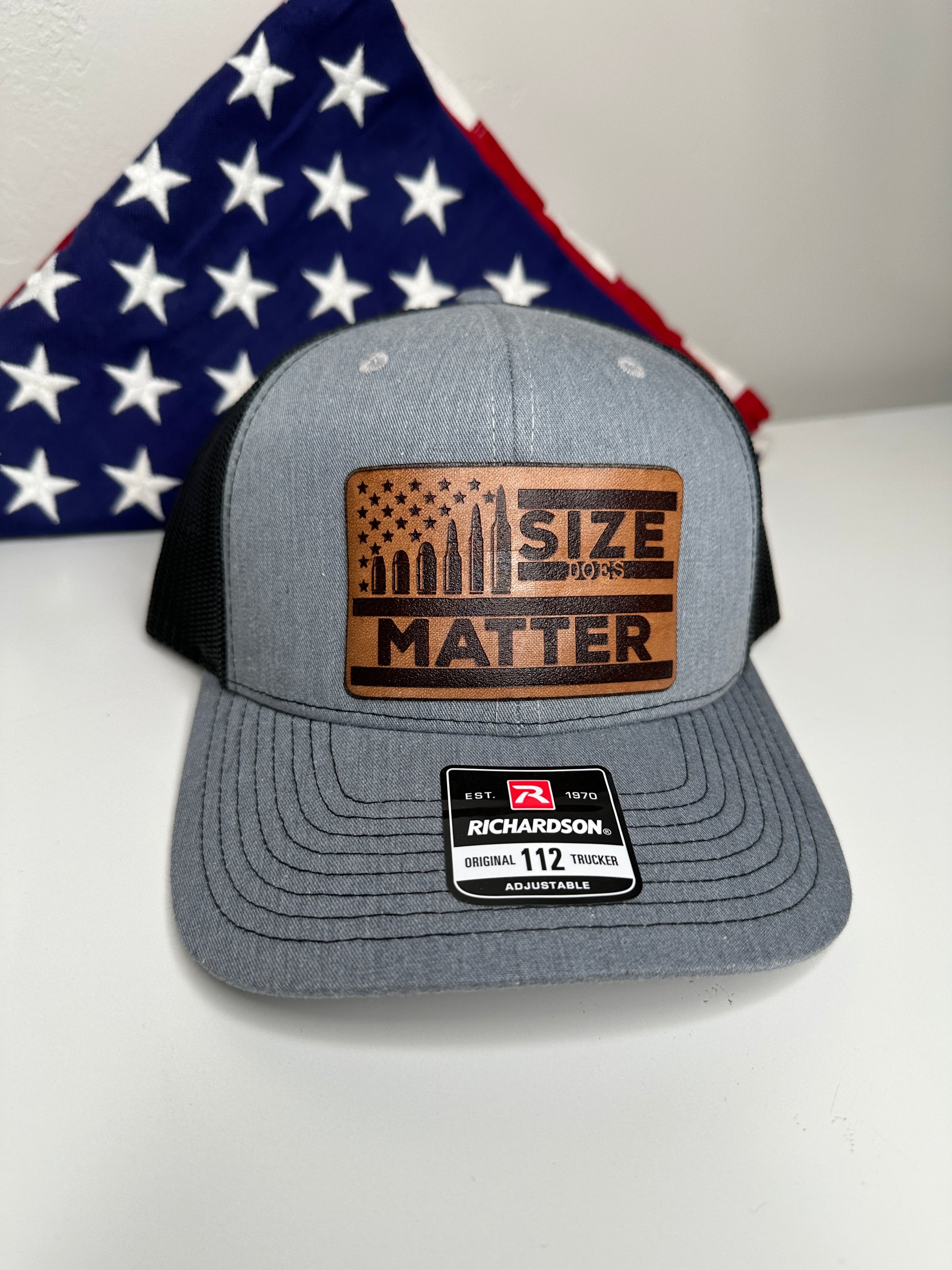 The heart of this hat lies in its patch, where the American flag serves as the backdrop to the bold proclamation. "Size Does Matter" is not just a statement; it's a reflection of the consideration, precision, and respect enthusiasts have for the impact that different bullet sizes can make.