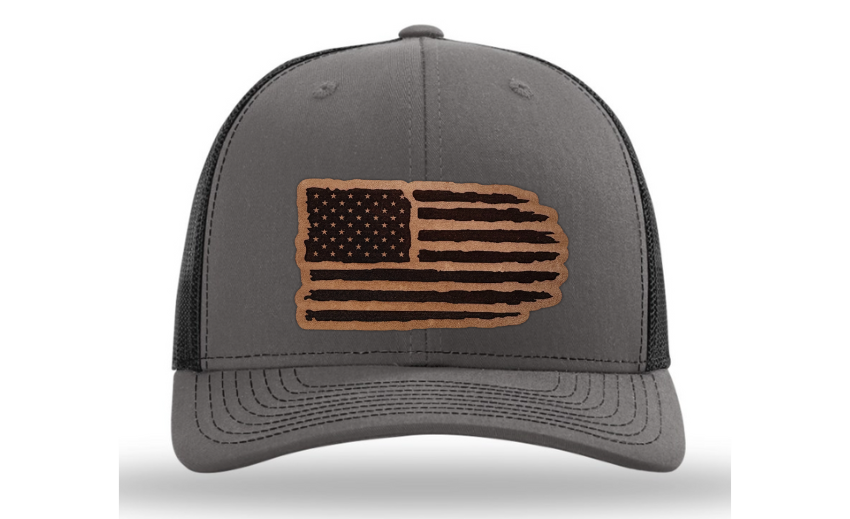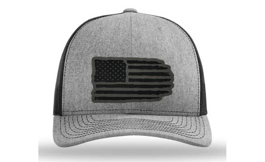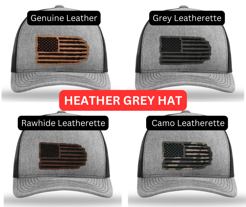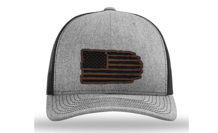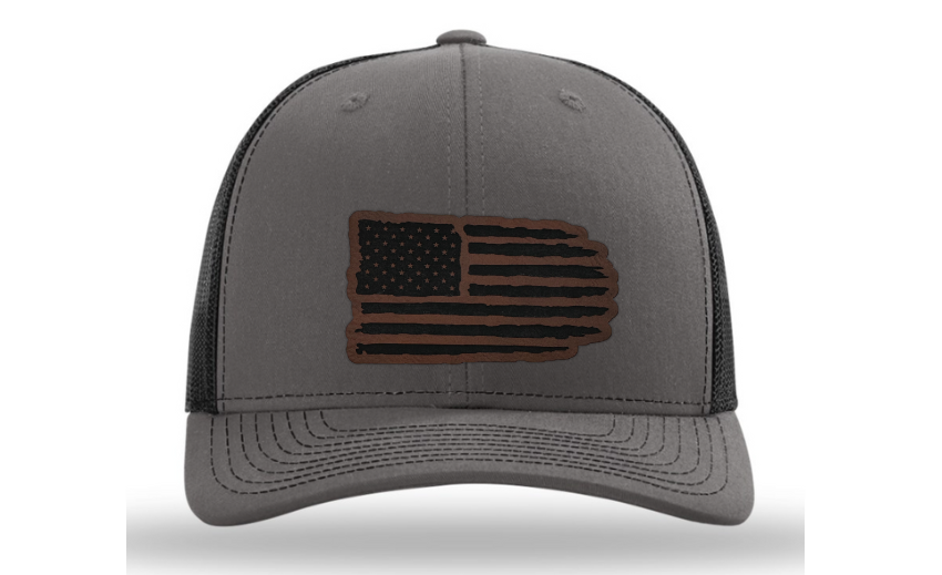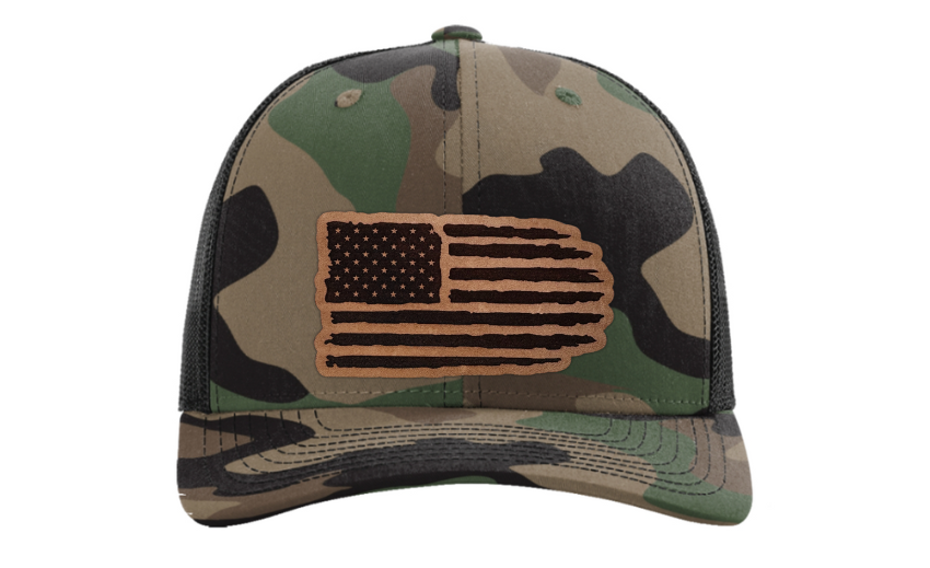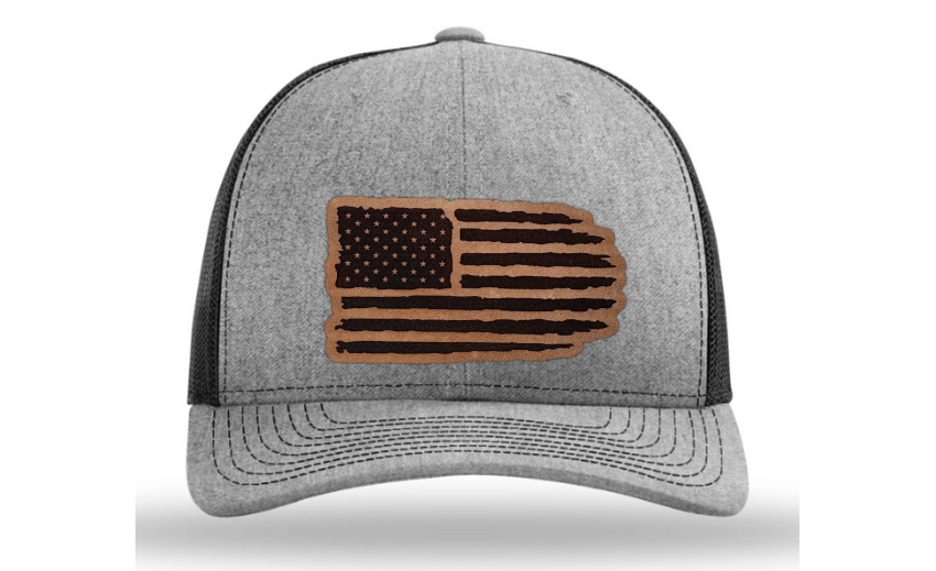 Crafted with precision and comfort in mind, the Richardson 112 Snapback offers an adjustable fit, while the FlexFit L/XL provides a snug and flexible feel. The defining feature of this hat is its meticulously crafted tattered American flag patch, available in Genuine Leather, Rawhide Leatherette, Grey Leatherette, and Camo Leatherette. This emblem pays homage to the enduring spirit of the United States and the strength found in weathering the storms.