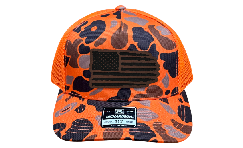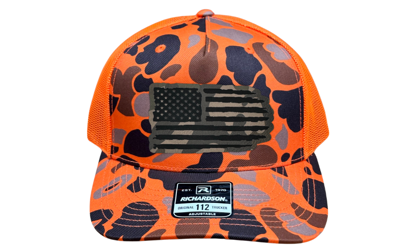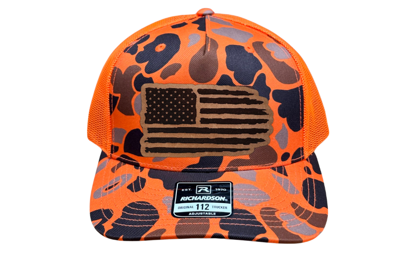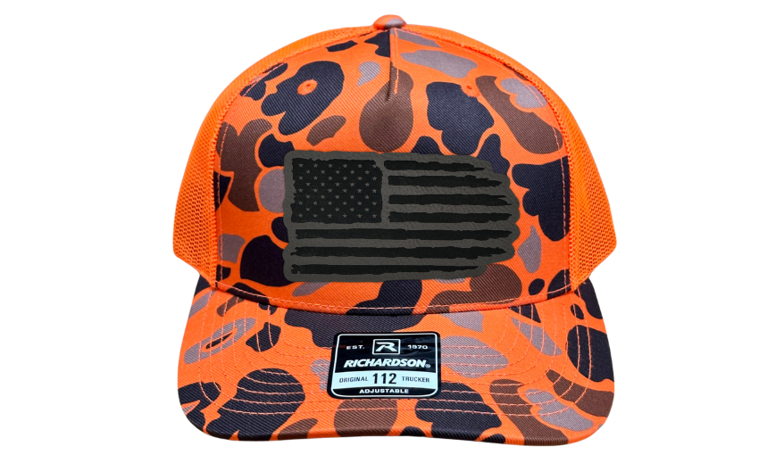 Introducing the Richardson 112 Snapback or FlexFit L/XL with a Tattered American Flag Patch – a hat that wears its patriotism with pride, featuring a symbol of resilience and enduring spirit. Choose your canvas from Charcoal, Heather Grey, Green Camo, and Orange Camo, each providing the perfect backdrop for a timeless American flag emblem that tells a story of strength and perseverance.