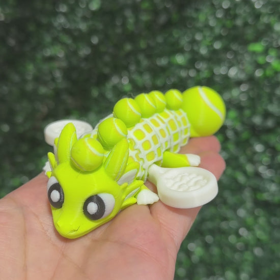 Printed in a vibrant tennis ball bright green with crisp white accenting and adorable racquet detailing, each dragon looks like it hopped straight out of a match. Its fully articulated body bends and wiggles with ease, making it a delightful fidget toy, desk companion or gift for any tennis play, coach or fan.