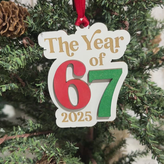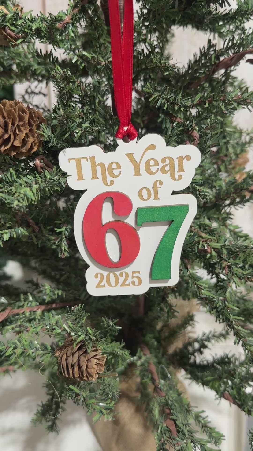 For every parent and teacher who has heard 6 7 shouted across the room one too many times, here is the version of the joke you can proudly hang on the tree. This ornament is laser cut and painted. It measures about 3" x 3.75", a perfect size that stands out without overwhelming the tree. Each ornament ships on festive holiday cardstock. The Year of 6 7 2025 Christmas Ornament.