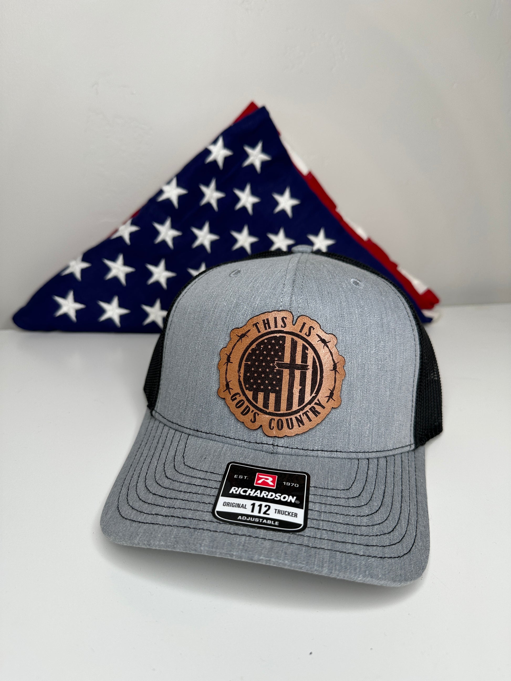 The heart of this hat lies in its patch, where the words "This is God's Country" are juxtaposed with the cross and the stars and stripes of the American flag, symbolizing the connection between faith and the love for one's homeland. It's a visual representation of the shared values that bind a nation.